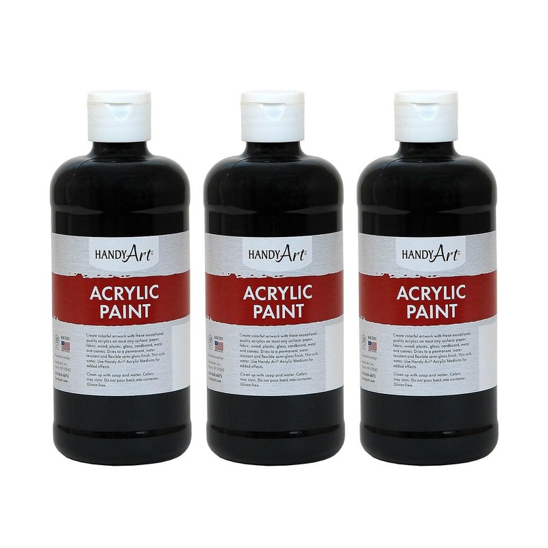 Handy Art Acrylic Paint, Mars Black, 16 oz. Bottle, Pack of 3 (RPC101100-3)