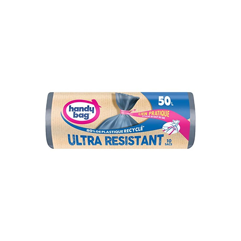 Handy bag Bin Liners, 50 L, Extra Robust, 80% Recycled Plastic, Practical Cord Closure, 3-Ply, Leak-Proof, 68 x 80 cm