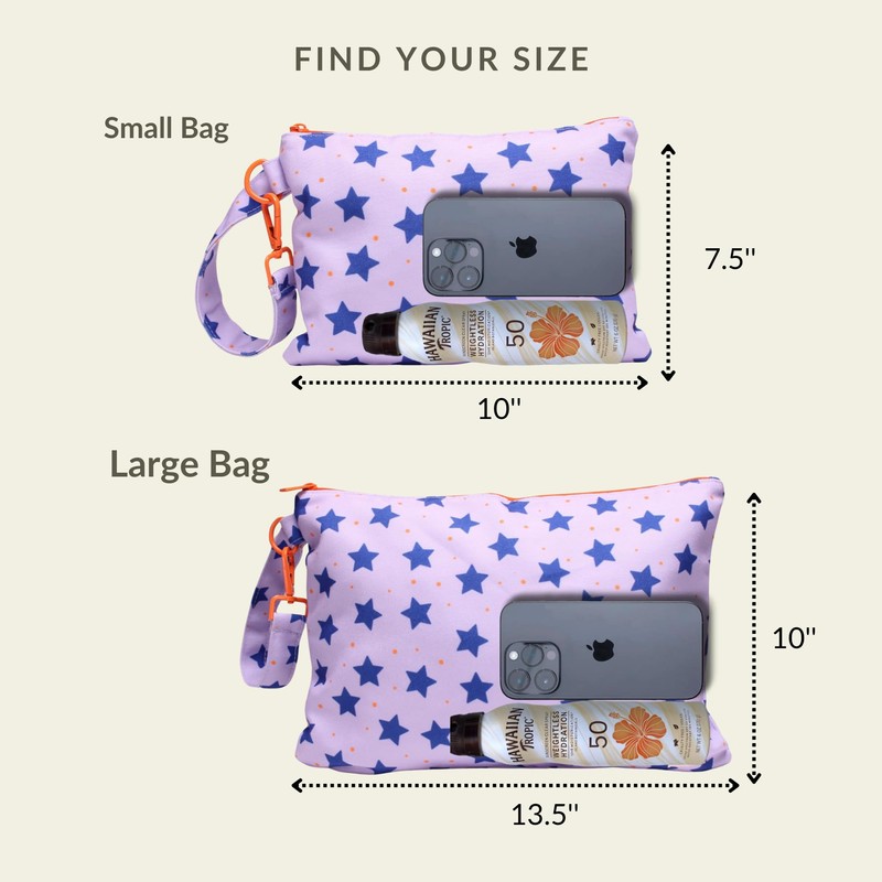 - Multifunctional - This innovative beach wristlet bag ensures your belongings are always within reach, providing chic storage for toiletries, wet clothes and wipes, electronics and other beach accessories making it the ideal companion for beach outings or transitioning seamlessly to city life.