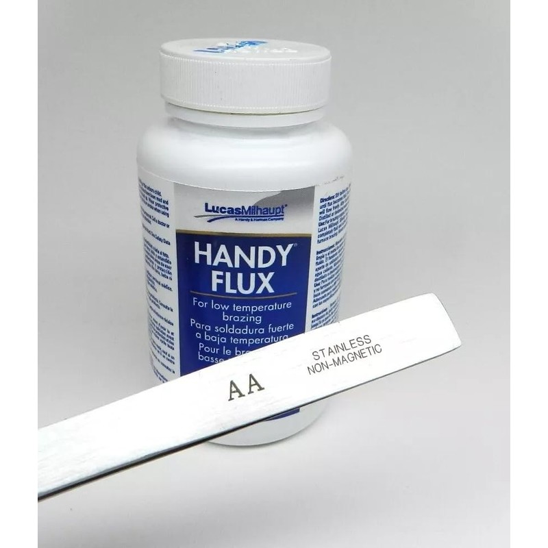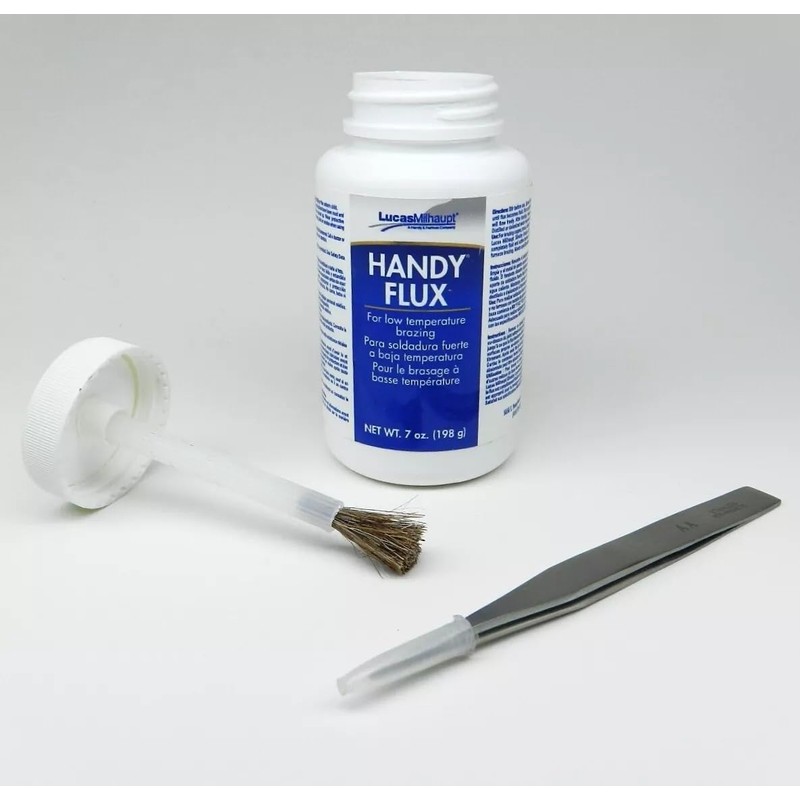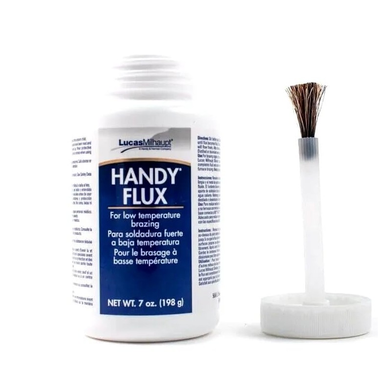 All-purpose, low-temperature flux Handy Flux is a long-lasting white paste type, very durable and won’t break down from prolonged heat, an all-purpose flux for use in brazing and soldering Gold, Silver, Brass, Copper, and other Non-Ferrous Metals.