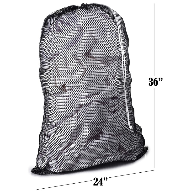 - La bolsa de lavandería de malla expandible mide un jumbo de 24 pulgadas por 36 pulgadas.