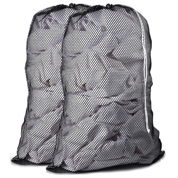 Handy Laundry Bolsa de lavandería de Malla Comercial: Material de Malla Resistente con Cierre de cordón. Lavandería de Malla Lavable a máquina Ideal (24 x 36 | Negro | Paquete de 2)