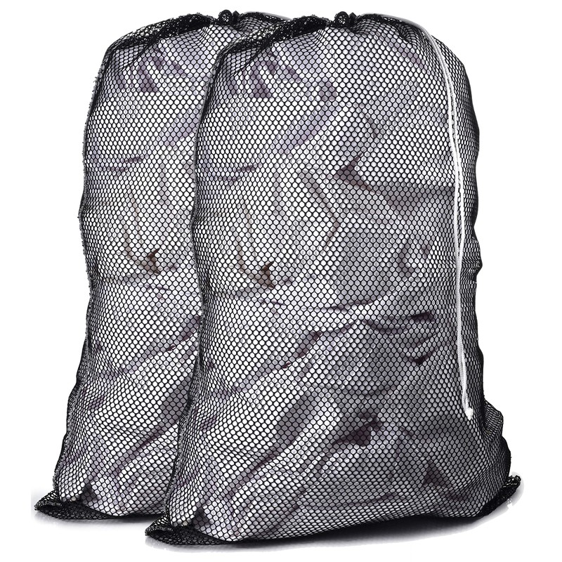 - Las bolsas de lavandería de malla con cierre de cordón brindan seguridad de que los artículos no se derramarán.