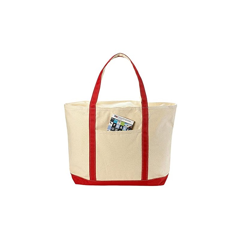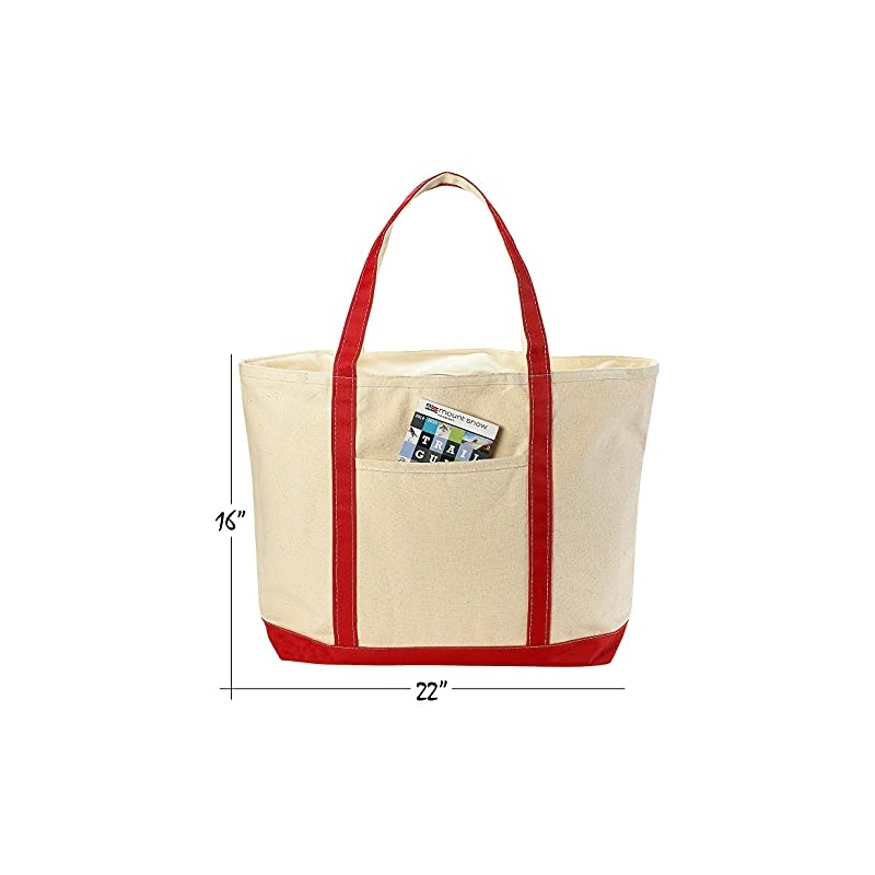 Handy Laundry Canvas Tote Beach Bag - Large Bags with Shoulder Straps, Strong Enough to Carry Beach Gear and Wet Towels. Front Pocket, Zippered Top Closure. (Red)