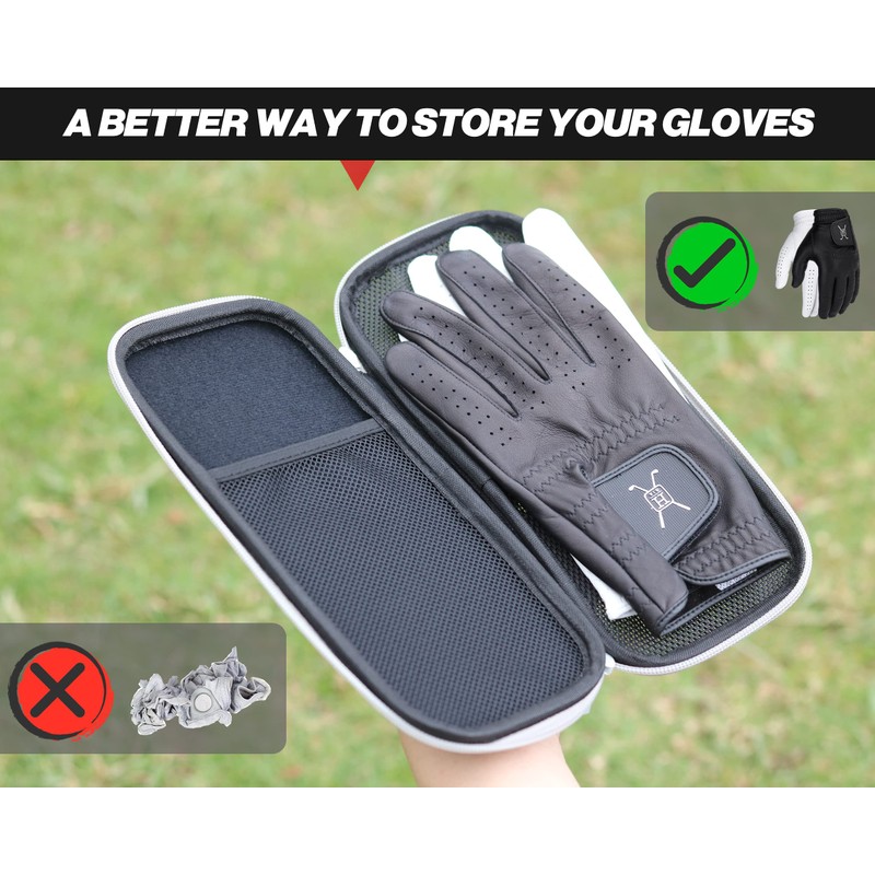 • STORE YOUR GLOVES This case is able to store up to three gloves at a time in case you want to change gloves during a round. No more fumbling in the golf bag to find your golf gloves. Outer hook area allows a glove to stay out for easy access