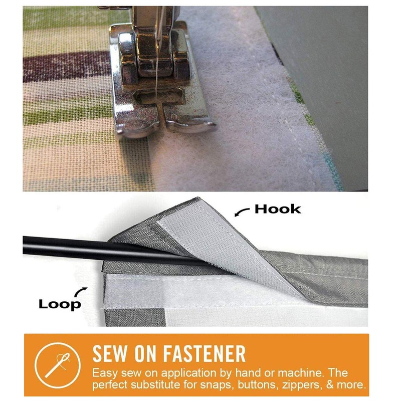 • FEATURE OF SEW ON HOOK AND LOOP:The hook and loop tape is non-adhesive sew-on style, made of nylon and polyester, durable and reusable.When the 2 sides are pressed together, the hook and loop will catch tightly. It can be sewn on the surface of fabrics, leathers, etc. To replace the role of buttons and zippers. They can also be washed and reused multiple times.