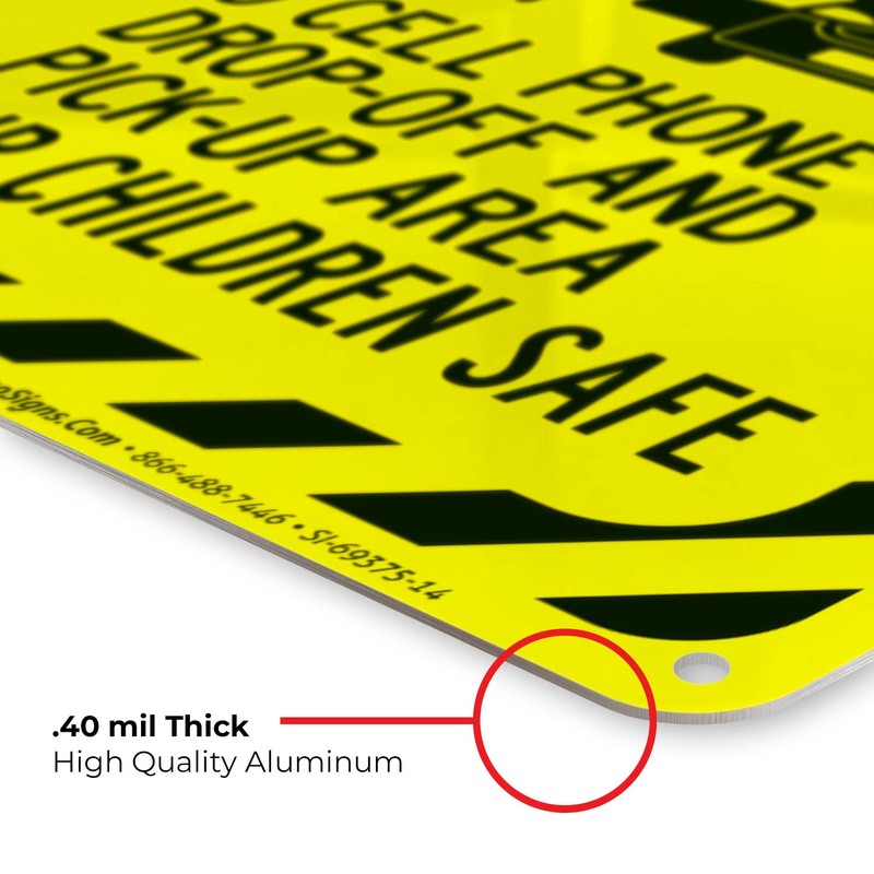 Hang Up Before You Pickup No Cell Phone in Dropoff and Pickup Area Keep Children Sign, 10x14 Inches, Rust Free .040 Aluminum, Fade Resistant, Made in USA