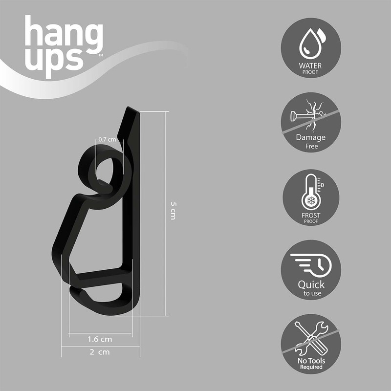 Hang Ups 50 Black Mini Plastic Gutter Hooks, Outdoor Light Hooks Clips, Shingle Hooks for Christmas Decoration Outside String Lights, Seasonal Fairy Light
