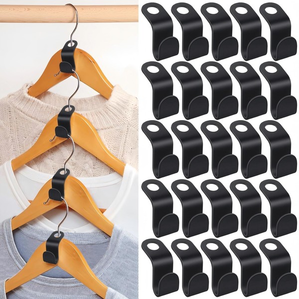 Hanger Connector Hooks, Space Saving Hangers for Closet Organizers, Storage Hangers Hooks, Cascading Hanger Hooks, Hanger Clips Plastic Hangers for Home, College Dorm, Wardrobe (50 PCS Black)
