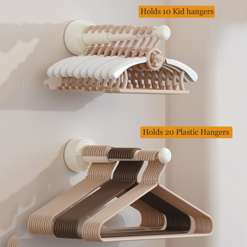 - Instant Adhesive Suction Design – No Tools, No Wait! Quick setup for immediate organization! This hanger holder uses powerful suction cups to adhere instantly to smooth surfaces like tiles, glass, or cabinets. Perfect for laundry room organization and storage, it requires no drilling or drying time—press, lock, and start hanging!