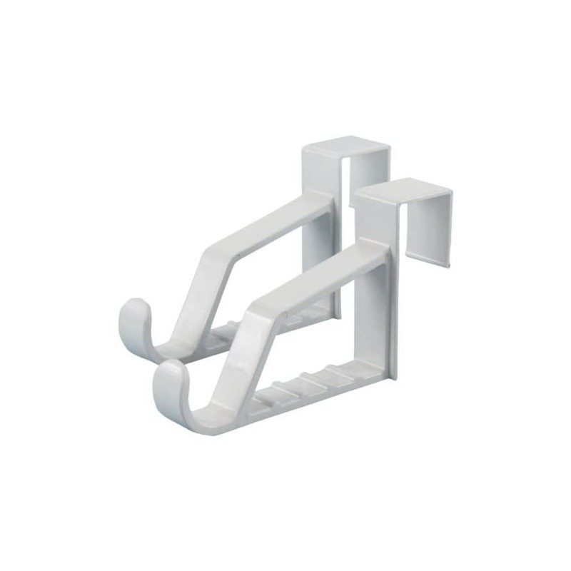 - Smooth, white super strong plastic. Easily fits over most doors. (Max. door width of 3.5cm). Slightly sprung for secure fit. Space saving design for hanging a variety of garments, coats towels etc.