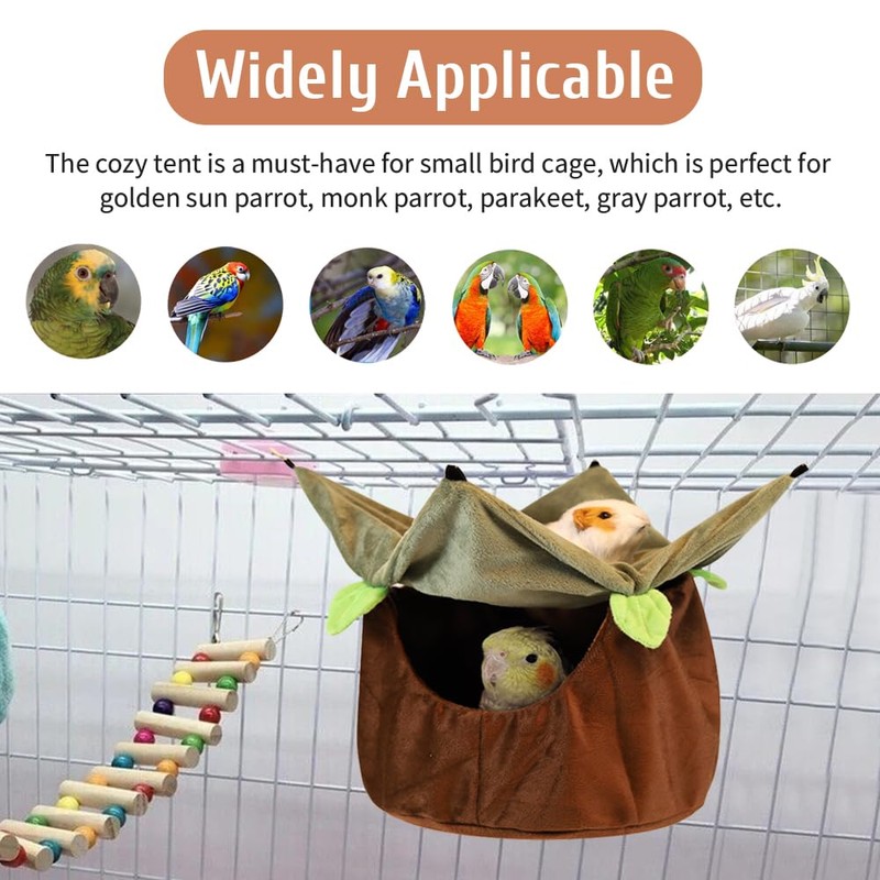 - 【Safe and reliable】 The inner layer is a comfortable cotton pad, and the upper layer is a landing bird hammock, providing extra warmth and safety. A reliable hook or rope ensures the hammock is securely attached to the cage. Colorful bird's nest huts can better capture the parrot's attention, provide them with hours of entertainment, keep them active, and reduce anxiety and loneliness in the cage.