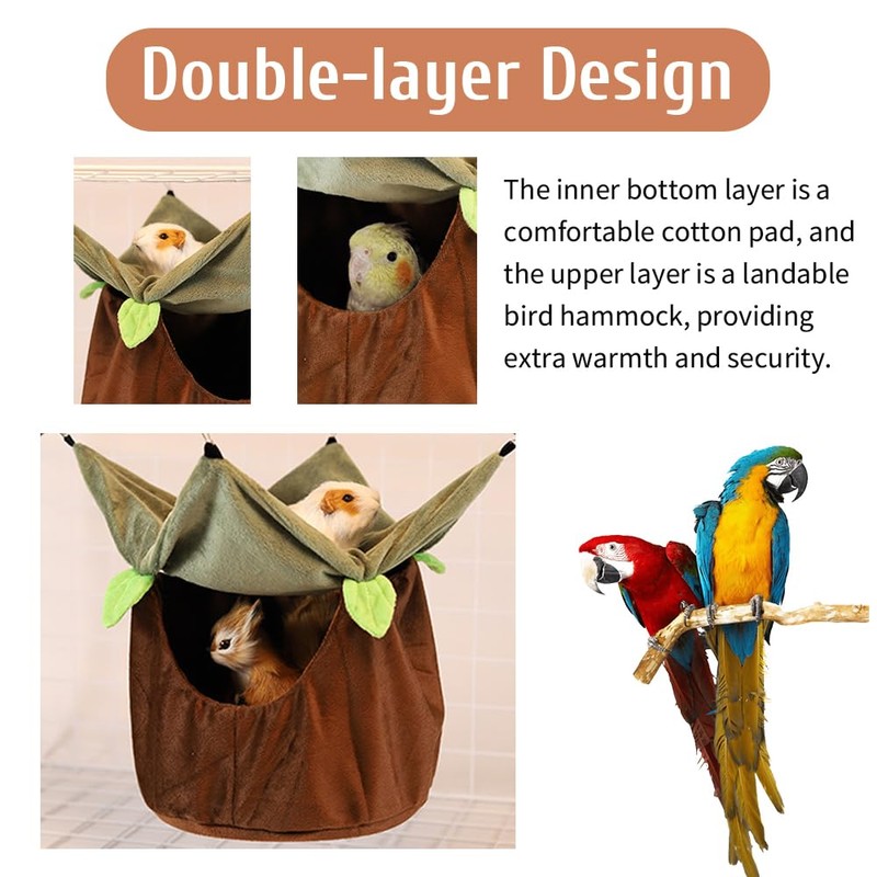Hanging Hammock Bird Snuggle Cabin,Double Bird Nest Bed,Double Layer Bird Swing Hammock Nest Bird for Parrots Budgies Parakeet Cockatiels Lovebird