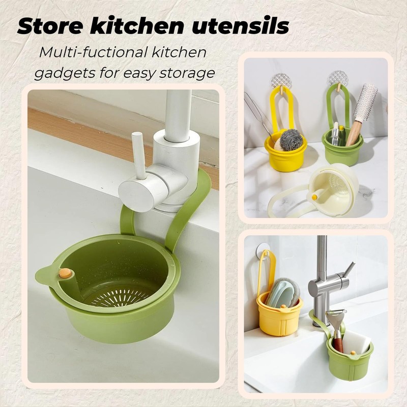 Hanging Sink Drain Basket,Press Automatic Dumping Kitchen Sink Food Waste Catcher,Multifunctional Faucet Hanging Strainer for Kitchen,Easy to Install