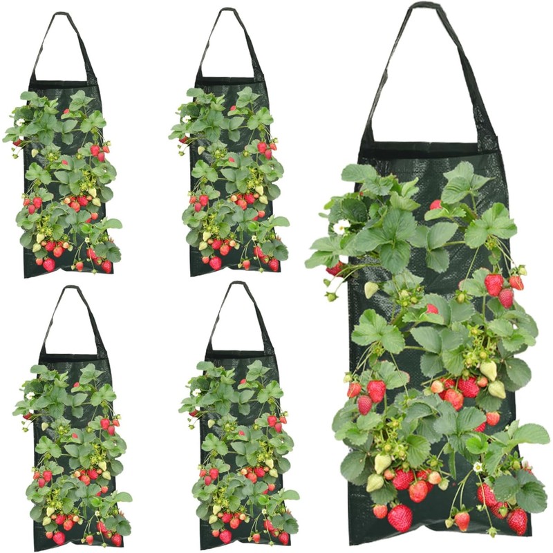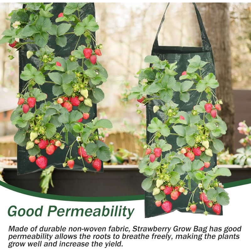 - Material: These grow bags are made from PE materials.The sturdy handles make it easy to hang the planters securely from poles or railings. Strawberry Planter measures 23.6 inches in length and features 8 holes, allowing you to grow multiple plants in a vertical.