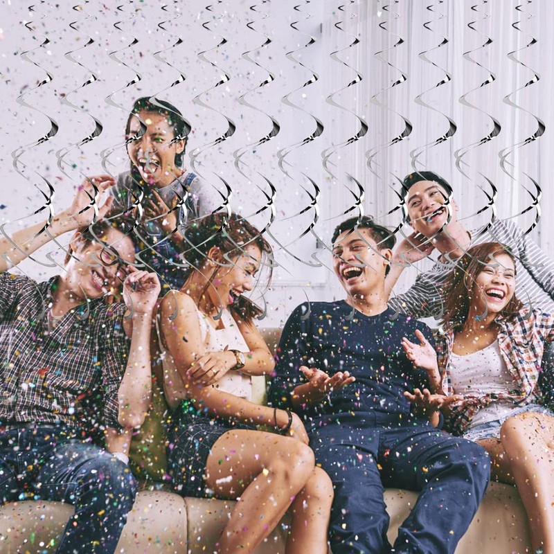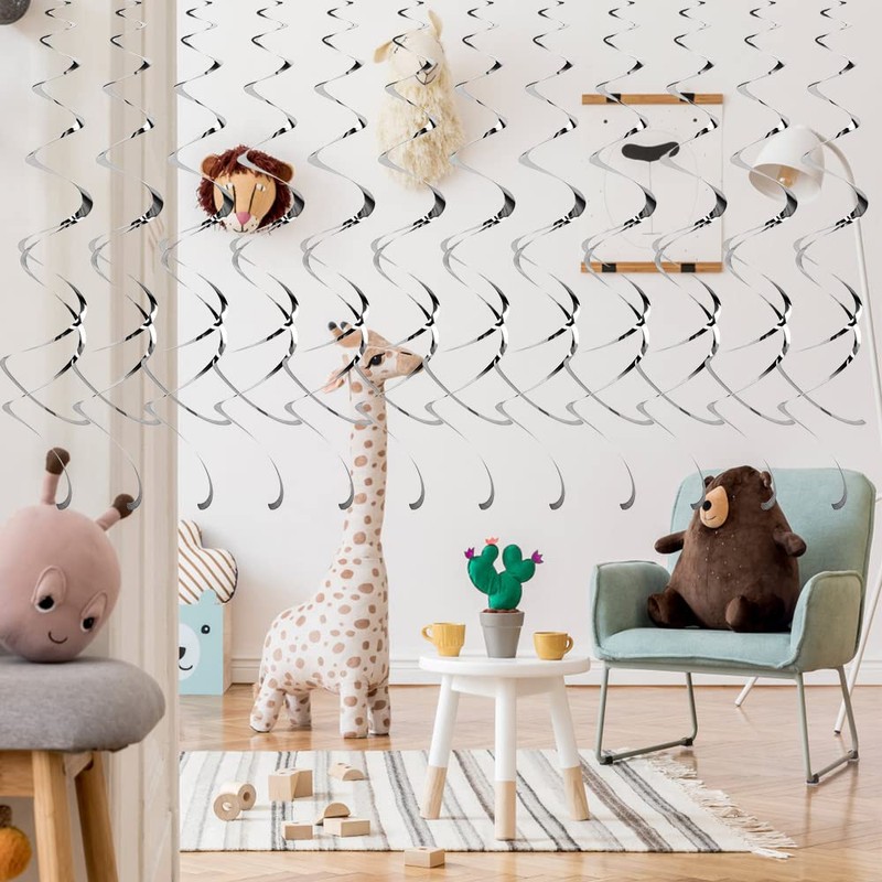 - 【High Quality Material】 These silver party swirl decorations are made of premium plastic with double-sided printed, lightweight ,durable and easy to clean, they are reusable and easy to store