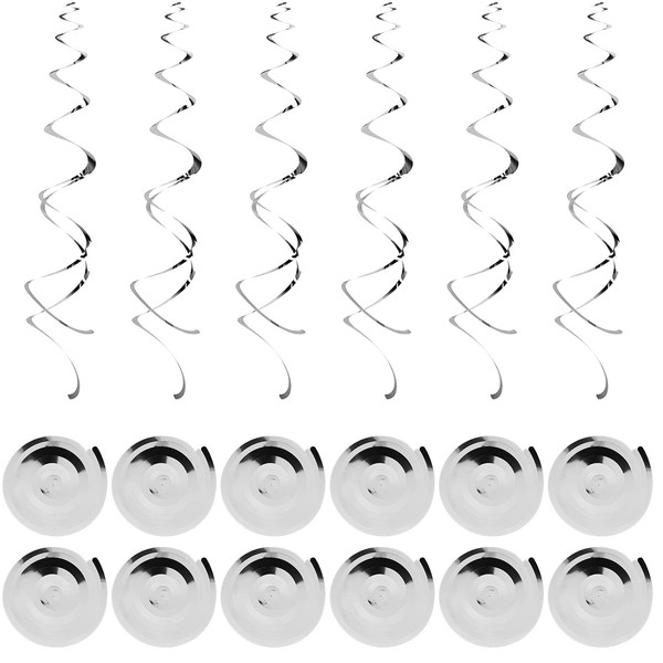 Hanging Swirl Decorations, 12 Rolls Silver Swirls Ceiling Party Decorations Shiny Foil Swirls, Party Spiral Streamers Decorations for Girls and Women Birthday Party, Wedding, Xmas, Party Supplies