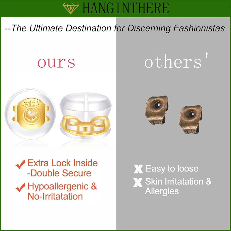 - "Double Lock Feature: These earring backs are equipped with a double lock system, firmly securing your earrings in place. Bid farewell to the annoyance of lost or misaligned earrings, no matter what the occasion is."