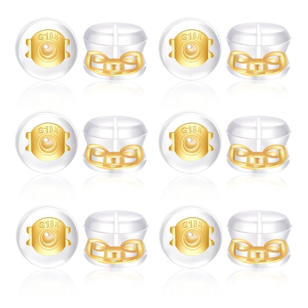 HANGINTHERE 12pcs 14K Gold Clear Rubber Earring Backs for Studs, Hoops, Dangles, Double Lock, 0.24 in x 0.2 in, Hypoallergenic Earring Backs