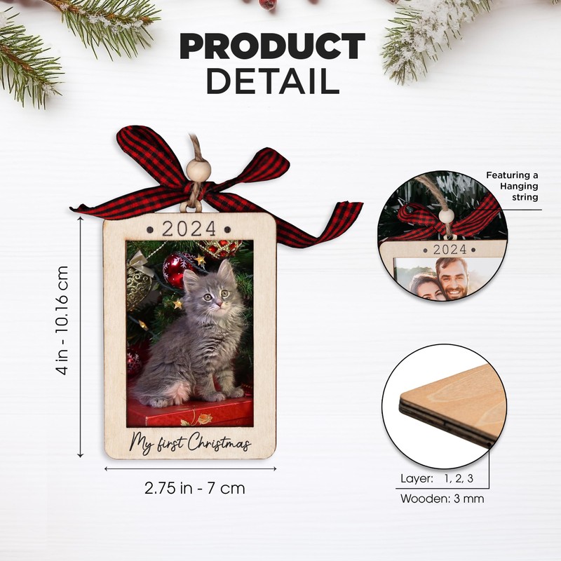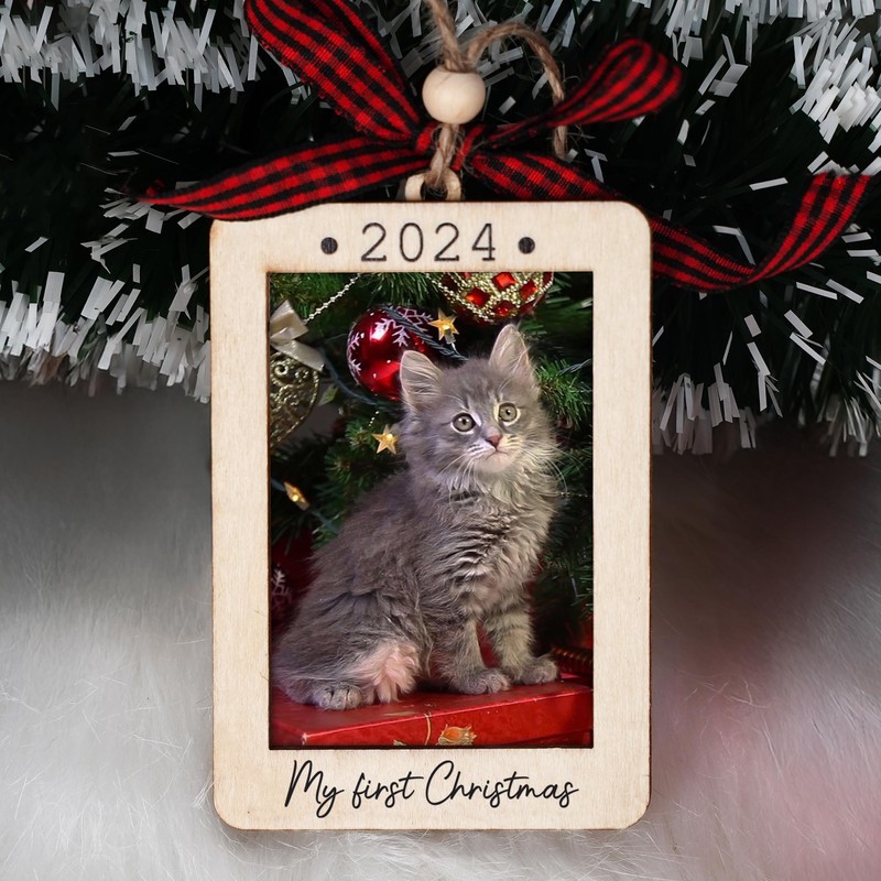 - Celebrate Your Cat’s First Christmas: Mark the joy of your kitten’s first holiday season with this delightful mini wooden picture frame ornament, featuring the phrase "My First Christmas." Suitable for cat first christmas ornament, cat ornament 2024, cat photo ornament, cat picture frame ornament