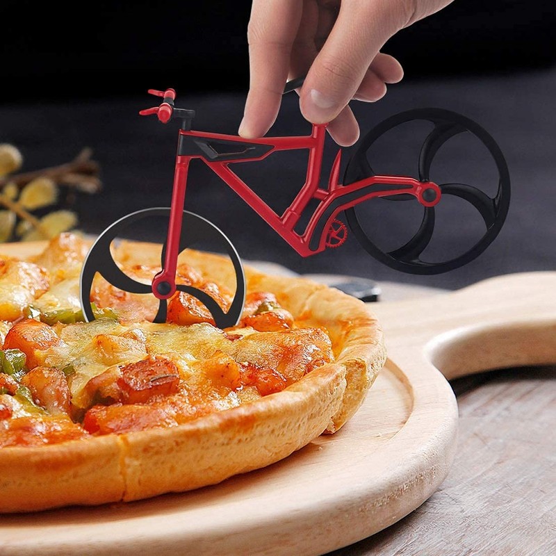 - 1. FUNNY PIZZA CUTTER: This novelty bicycle pizza cutter is designed to cut pizza crusts, pizza dough, pancakes, waffles, and pastry with ease. Look cool, cute, and chic on display in your kitchen. Catch eyes in kids' birthday parties, pizza parties, and bicycle parties.
