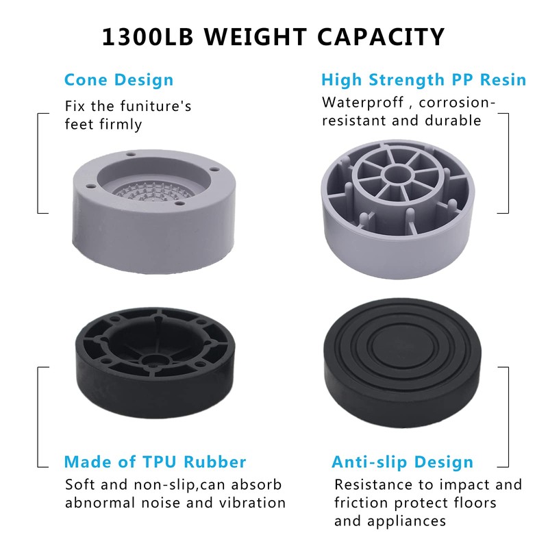 - 【ANTI-SLIP SHOCK ABSORPTION DESIGN】:The bottom of the riser is designed with TPU non-slip rubber pad,it can protect furniture and floors from scratches,and reduce vibration. Anti-slip design of the top triangular cone avoid furniture sliding around