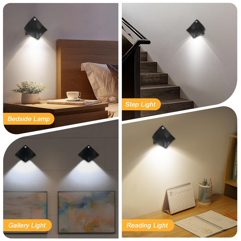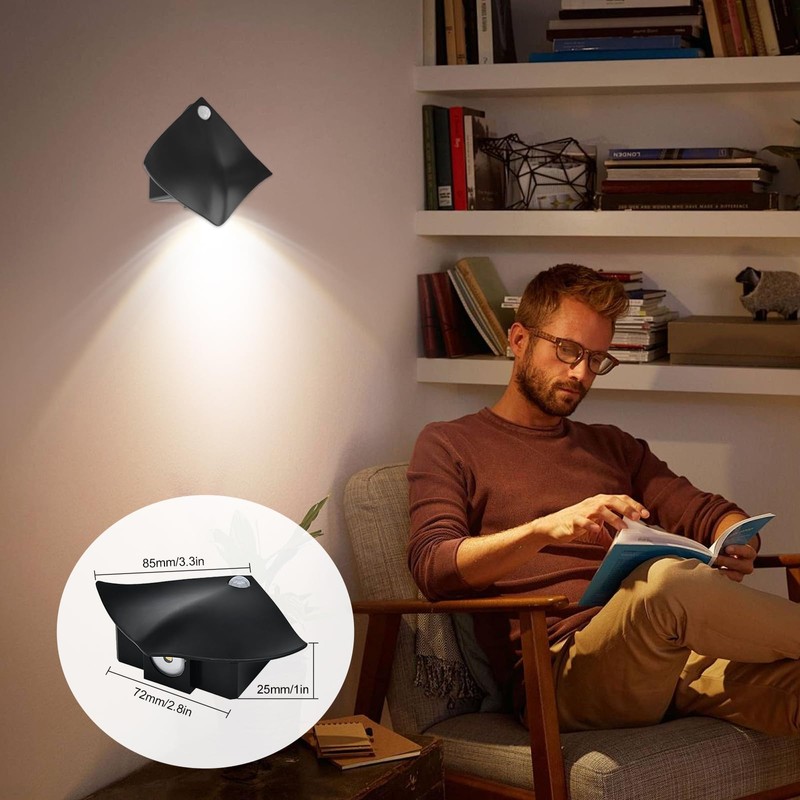 - Wireless Battery Wall Light: Powered by 3* AAA batteries (not included). It is easy to twist the back cover of the lights and install the batteries. This wireless motion sensor light indoor low consumption and can save a lot of energy.