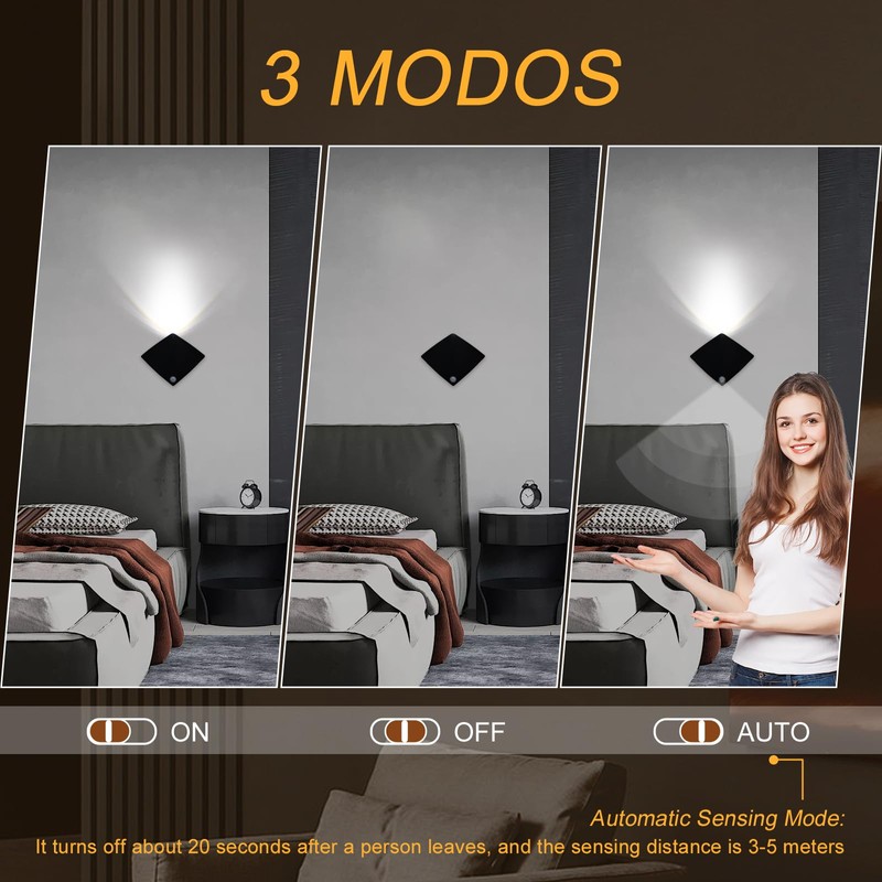 - Smart Motion Sensor Wall Light: Haninula wall lights indoor with sensitive motion sensor function. After the wall sconce is set to Auto Mode,it will remain in automatic sensing mode when the environment is dark,and when someone approaches, the wall sconces will automatically light up, after about 20 seconds of no human activity, the lamp will automatically turn off.