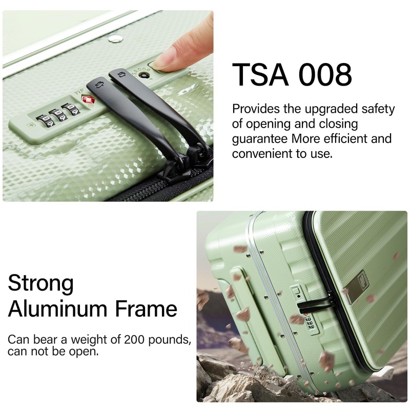 Hanke 20 Inch Carry On Luggage with Front Pocket Aluminum Frame (Can Not Open in The Middle) Hard Shell Suitcases with Wheels Rolling Luggage Suitcase with Lock Travel Luggage for Weekender-Bamboo Green