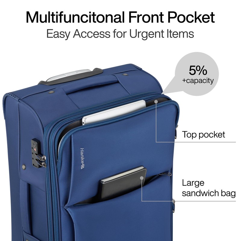 - 【Lightweight & Durable】Hanke softside carry on roller bag is made of premium fabric material which is lightweight, and the thicked fabric can effectively prevent scratching, tearing, and violent transportation in travel. Perfect personal item bag for work business trips, overnight journey and so on.