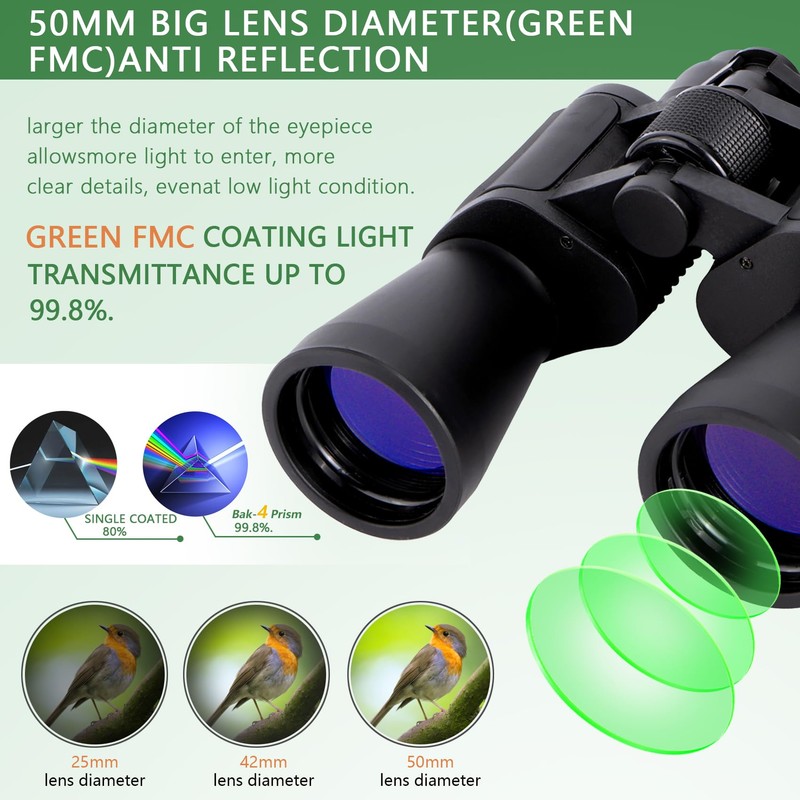 • High Magnification for Unmatched Clarity: The 20x50 HD binoculars provide professional-level magnification, allowing you to see distant objects with unparalleled clarity. Whether you're bird watching or stargazing, these binoculars are a must-have for capturing every detail.