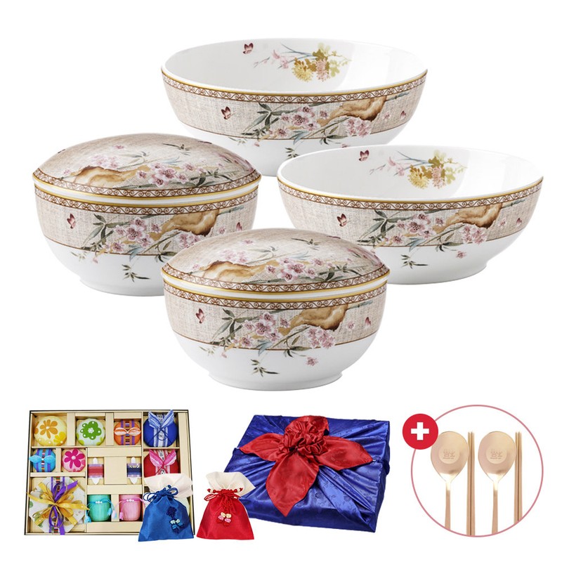 Hankook Ceramics [Customer Packaging] Bone China Four Gentlemen Danbangi Cutlery Set 4(6)p (Titanium Couple Spoons Provided) / 한국도자기 [예단포장] 본차이나 사군자 단반상기 예단세트 4(6)p (티타늄부부수저 증정)