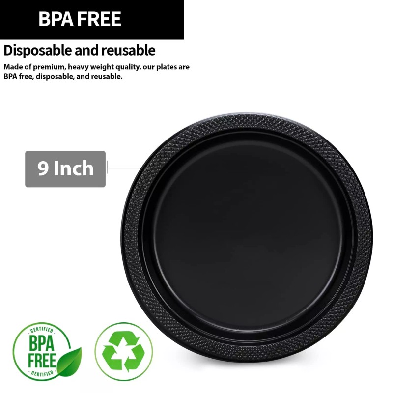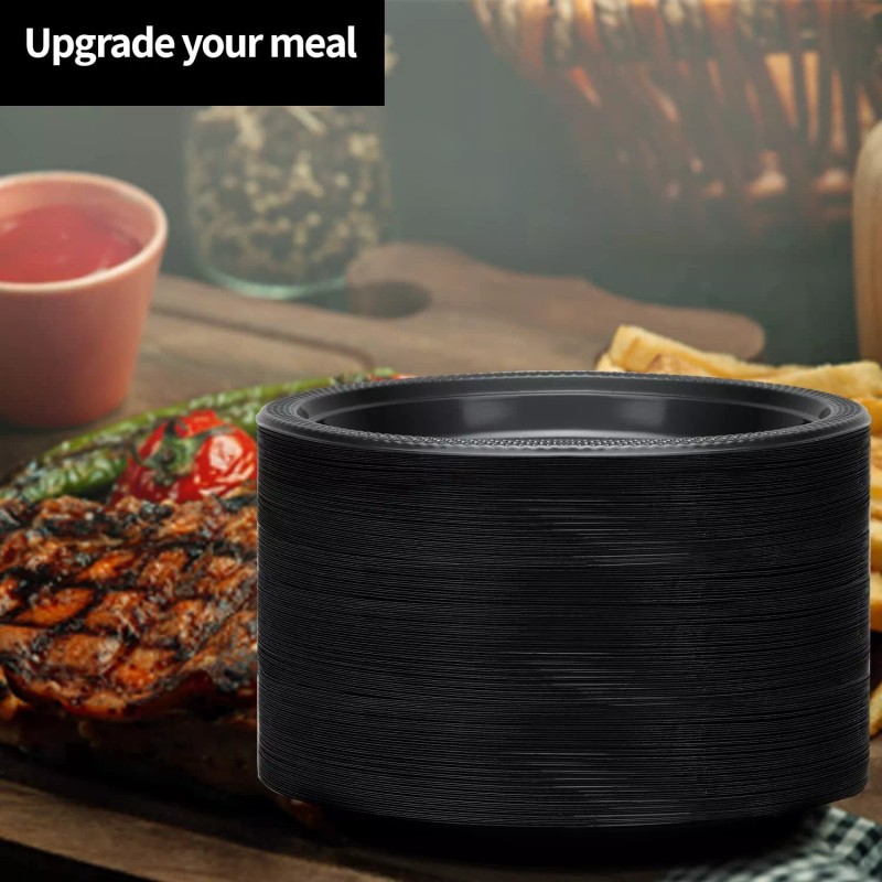 - PACKAGE INCLUDES: 50 Black Round Plastic Plates - 9"