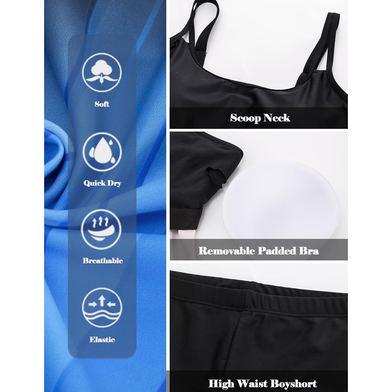 - Modest Swimsuits for Women: Tankini bathing suit made of soft, elastic, and quick-drying fabric. This durable and comfortable bathing suit is perfect for women, ladies, and moms