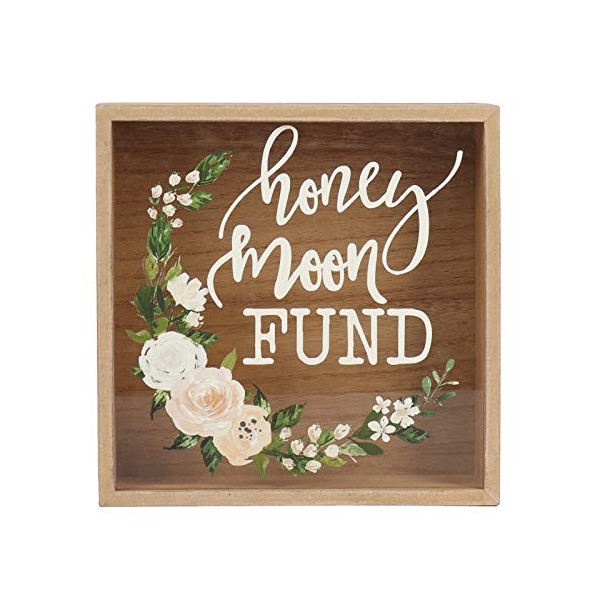 Hanna Roberts Honey Moon Fund and Card Rustic Wood Box with Mixed Floral Garland Design for Weddings, Birthdays, Graduations, Baby and Bridal Showers, 9.5" x 3" x 9.5", Honey Moon Fund