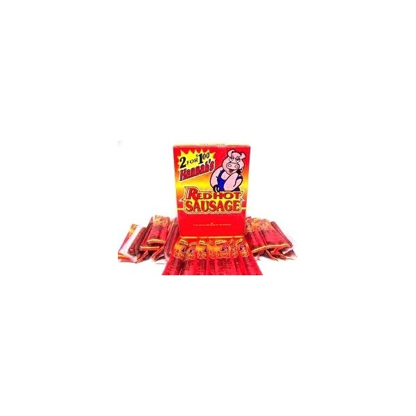 - Hannah's Red Hot Sausage - Individually Wrapped Sausage Sticks - 50 (.70 oz Meat Snack Sticks) Per Box