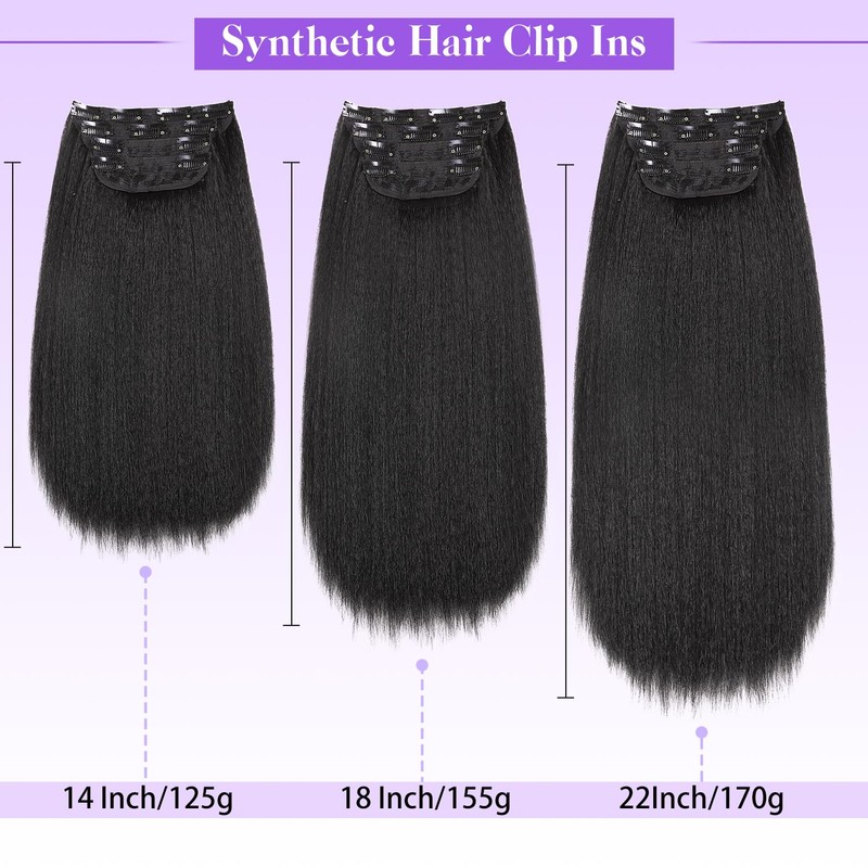 3. The synthetic fibers kinky straight clip ins hair extensions are tangle free and easy to style with heat tools.