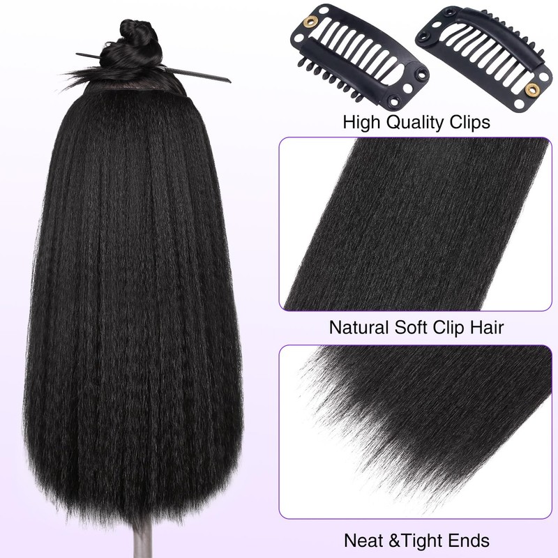 - NATURAL-LOOKING STYLE: These clip in hair extensions feature a kinky straight texture that looks just like natural African American hair whether worn out or pulled back.