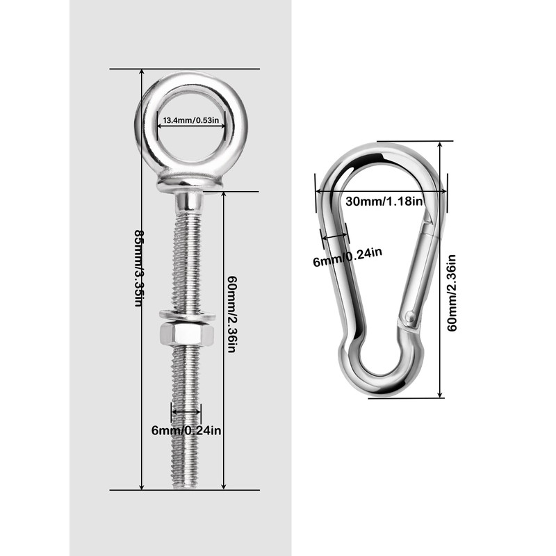 hannger 5 Pack M6 Eye Bolt, Eye Bolts with Nuts & Washers & Carabiners, 316 Stainless Steel Eye Bolt Heavy Duty, Marine Grade Threaded Eyebolts.