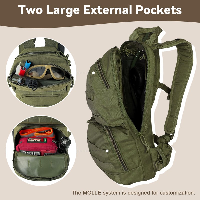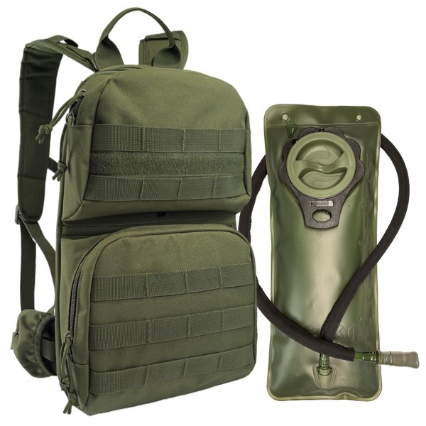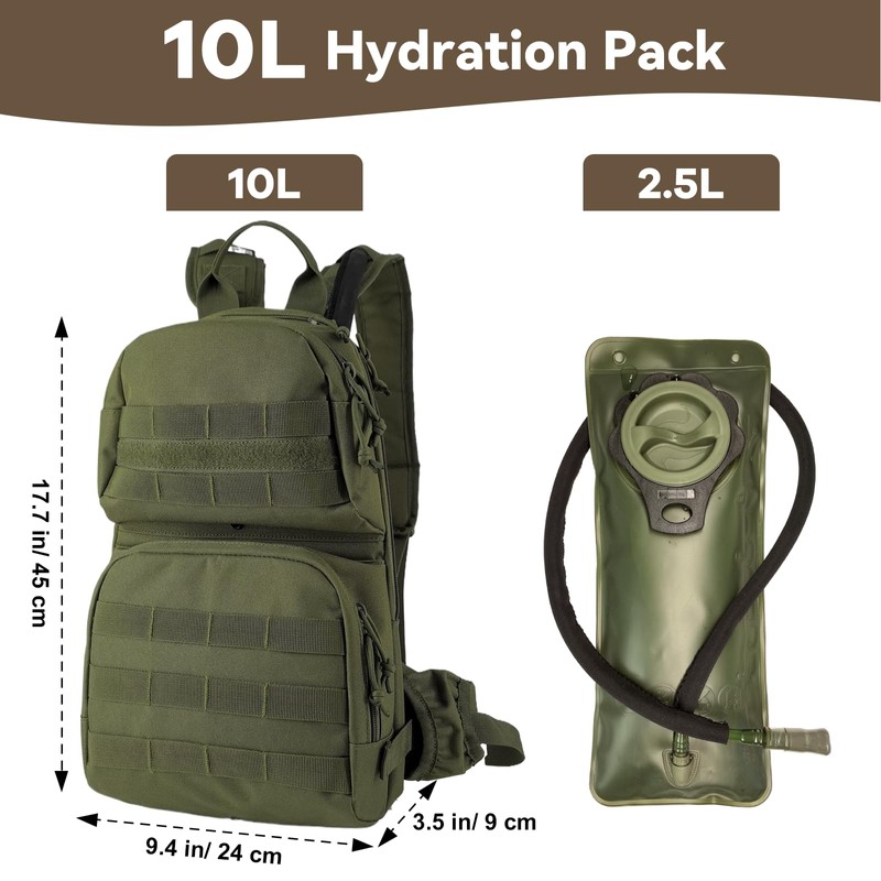 Hannibal Tactical 10L Hydration Pack, Water Backpack with 2.5L Water Bladder, MOLLE System for Outdoor Hiking, Biking, Running, Olive