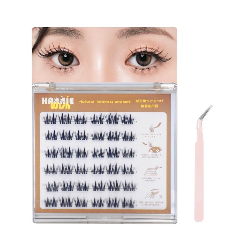 Hannie wish False Eyelashes, For Parts, No Glue, No Barrel, Natural, Long Lasting, For Beginners, Tweezers Included
