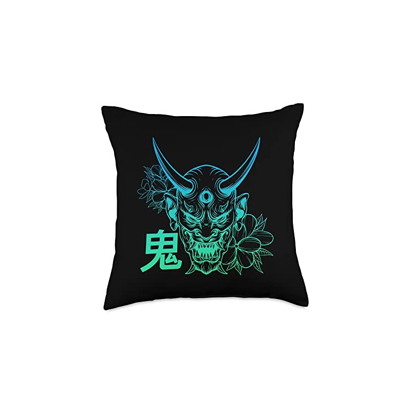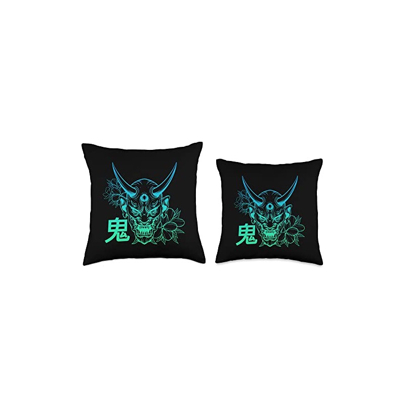 Hannya Oni Mask/ Japan Anime, Demon Warrior Mask, Throw Pillow