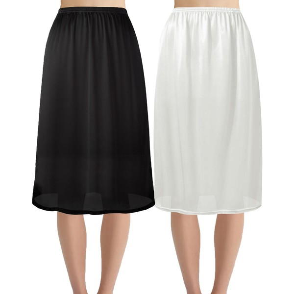 Hanpceirs 69/79 cm Pack of 2 Long Skirts for Women Underskirt Petticoat for Under Dresses Extender Underskirt, Black+White 69