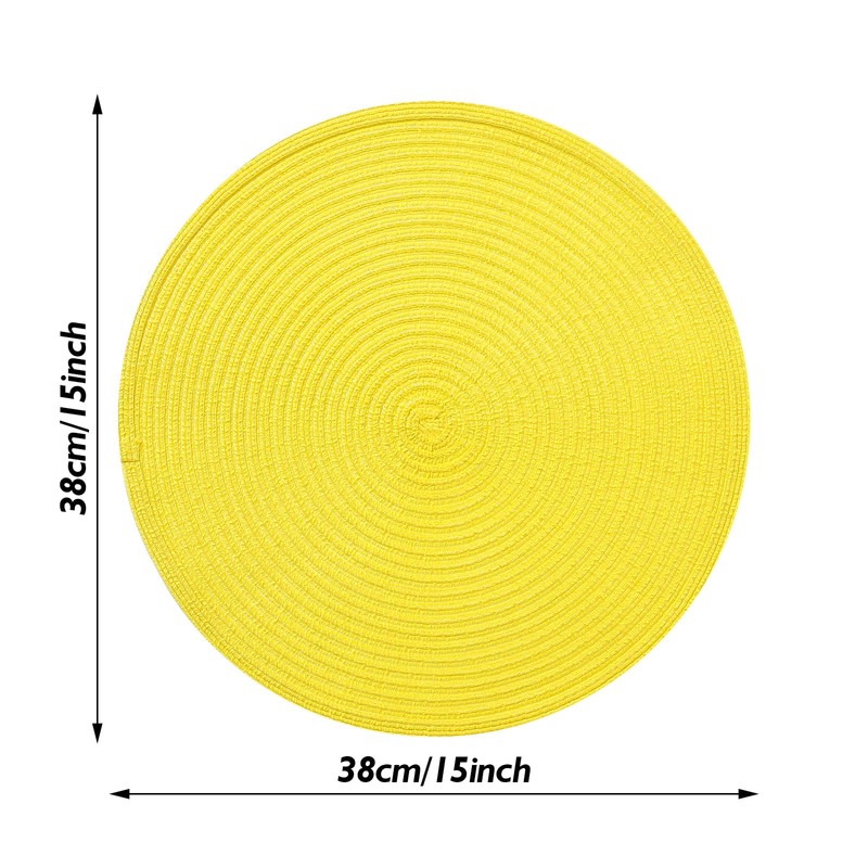 HANRONG Round Cotton Placemats Set of 6 Washable Round Placemat 15 inch Round Braided Placemats Circle Placemat Table Mats Woven Table Placemat (Yellow)