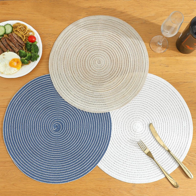 - Easy to Store: The placemats are classic round models in versatile colors, every color design can perfectly match the dining table and plates.The storage area is small, just roll up the placemat and put it in a drawer for storage.
