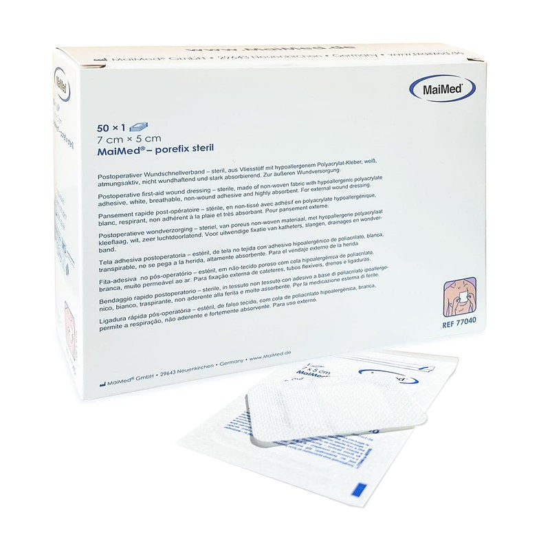 - Lieferumfang und Details: 1 Box mit 50 Pflastern (einzeln verpackt) steril 7 x 5 cm