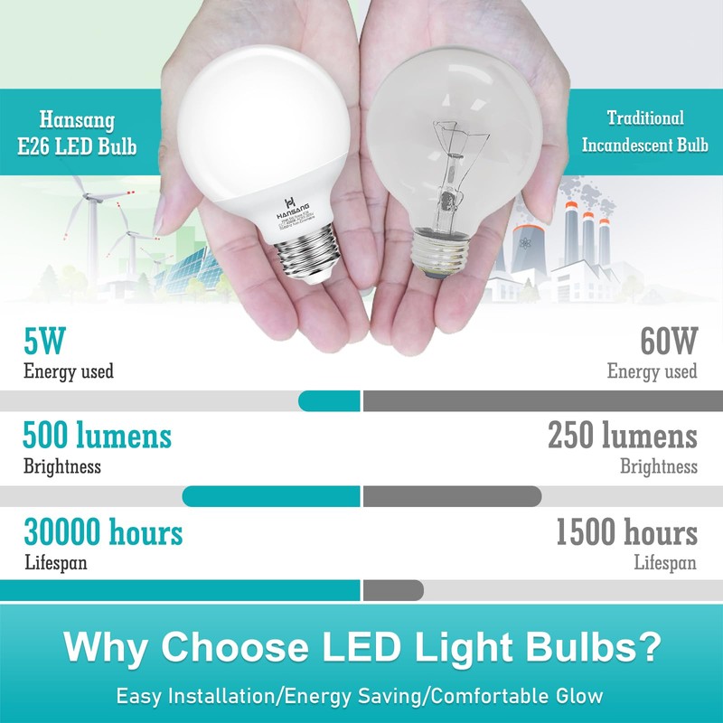 - Globe Light Bulb With Long Lifespan: With 10-time longer lifespan than the 60 watts incandescent light bulbs, these LED vanity light bulbs.