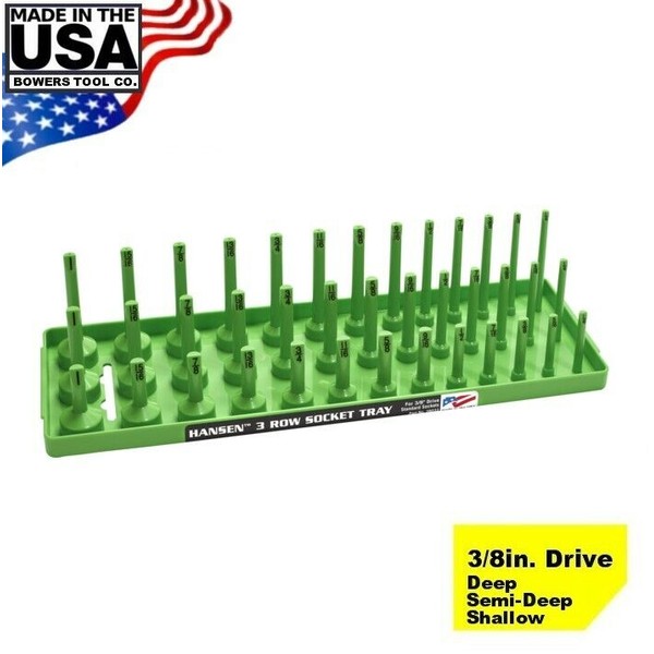 Hansen 3/8" Socket Tray Organizer Holder 3 Row Standard SAE Shallow Deep Green