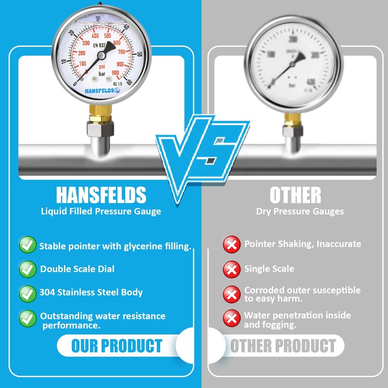 HANSFELDS 0–60 bar Manometer Glycerin Gefüllter 63 mm G1/4 Anschluss von unten