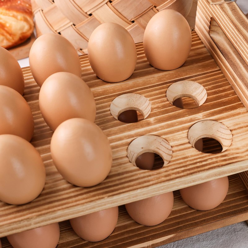 • Efficient Storage - Our Wooden Egg Holder boasts a large and elegant design, capable of accommodating up to 18 eggs, providing ample storage space for your kitchen. Its practical yet stylish features make it an ideal choice for efficiently organizing your eggs.